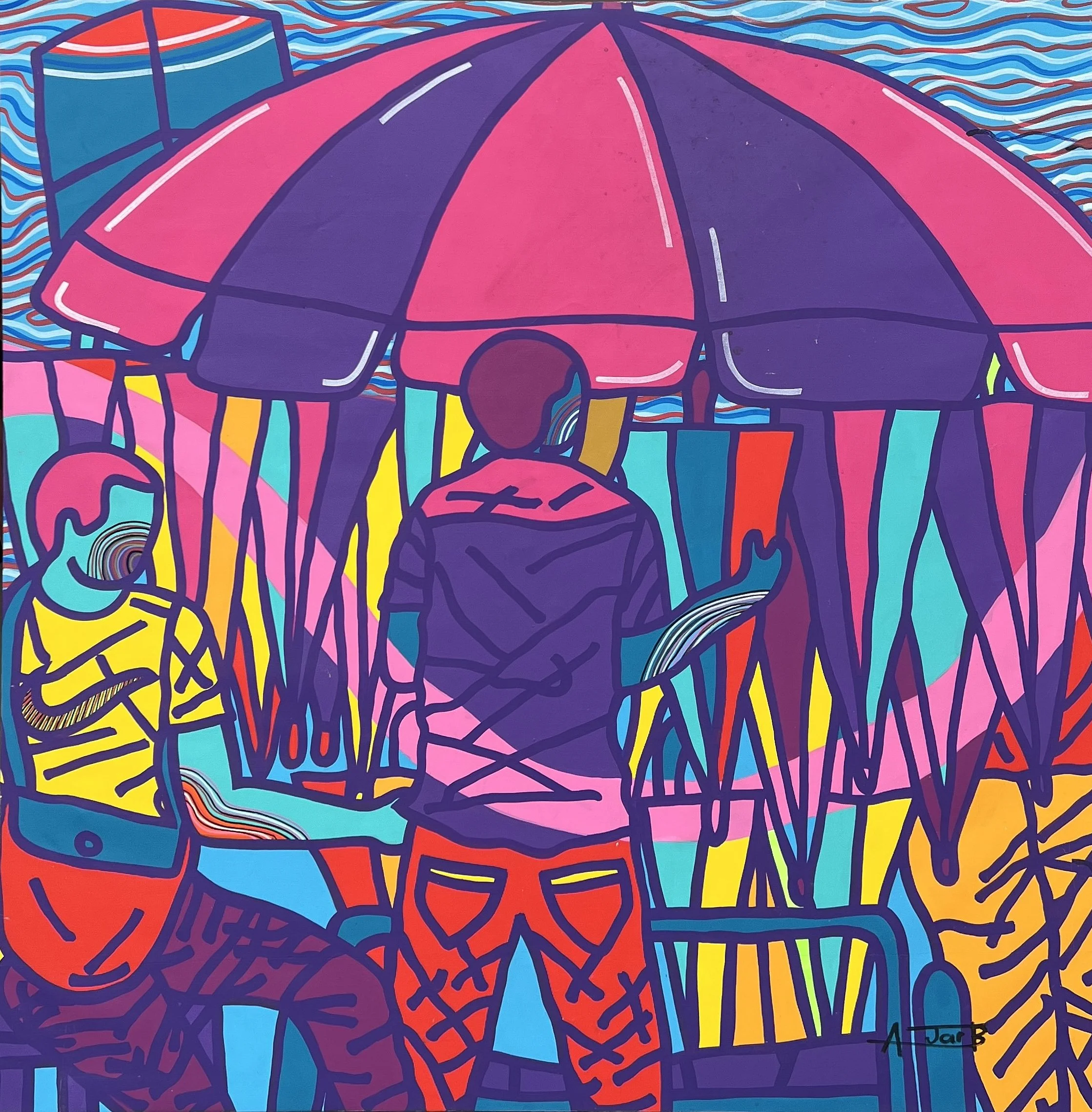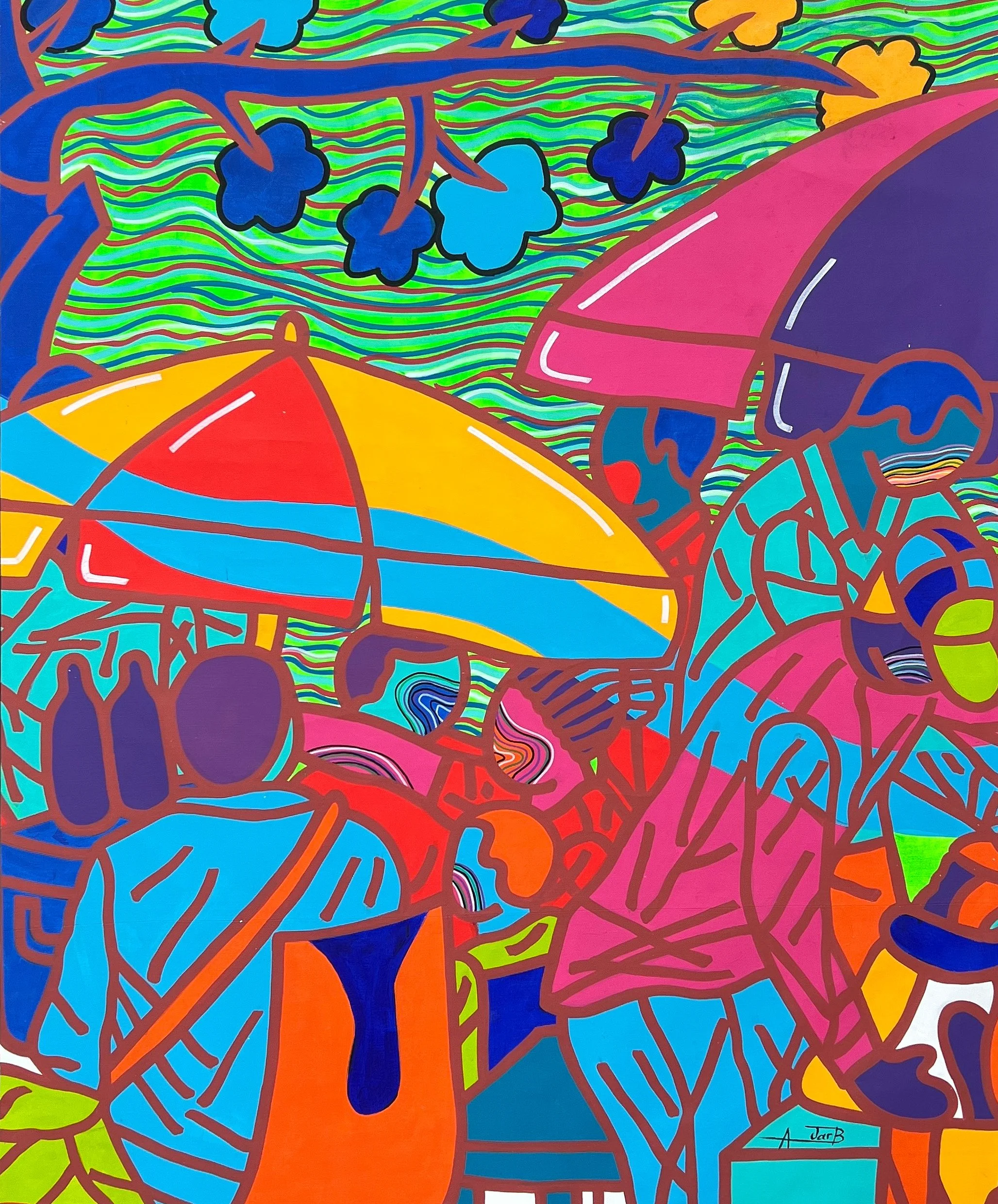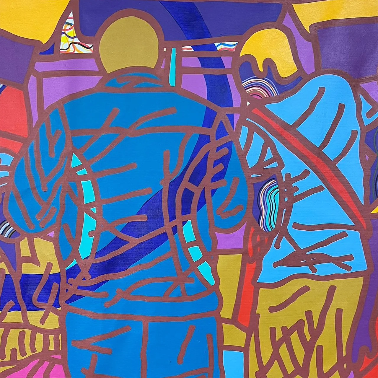 Entre la spontanéité du Pop, la liberté de l’abstraction et la mémoire des studios photo de son enfance, il invente une peinture chaleureuse et urbaine, à la fois narrative et symbolique. Son travail célèbre la vitalité des communautés, la dignité des corps et l’imagination comme force de transformation.
