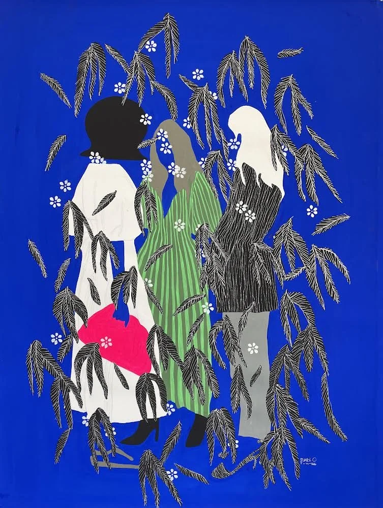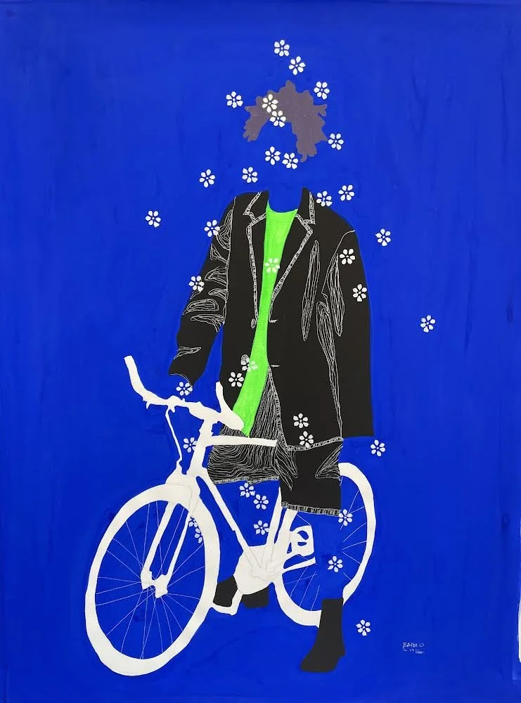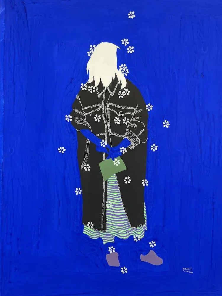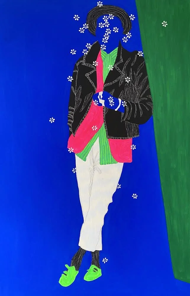 Son travail se distingue par des figures sans visage plongées dans une végétation luxuriante, réalisées avec des pigments, de l’acrylique et des stylos. Par cette imagerie vibrante, il explore la relation entre l’humain et la nature, tout en interrogeant les liens sociaux et affectifs. Portée par un idéal d’ouverture, son œuvre célèbre la richesse de la diversité et rayonne d’un optimisme discret, en dépit du contexte politique tendu qui entoure sa pratique.