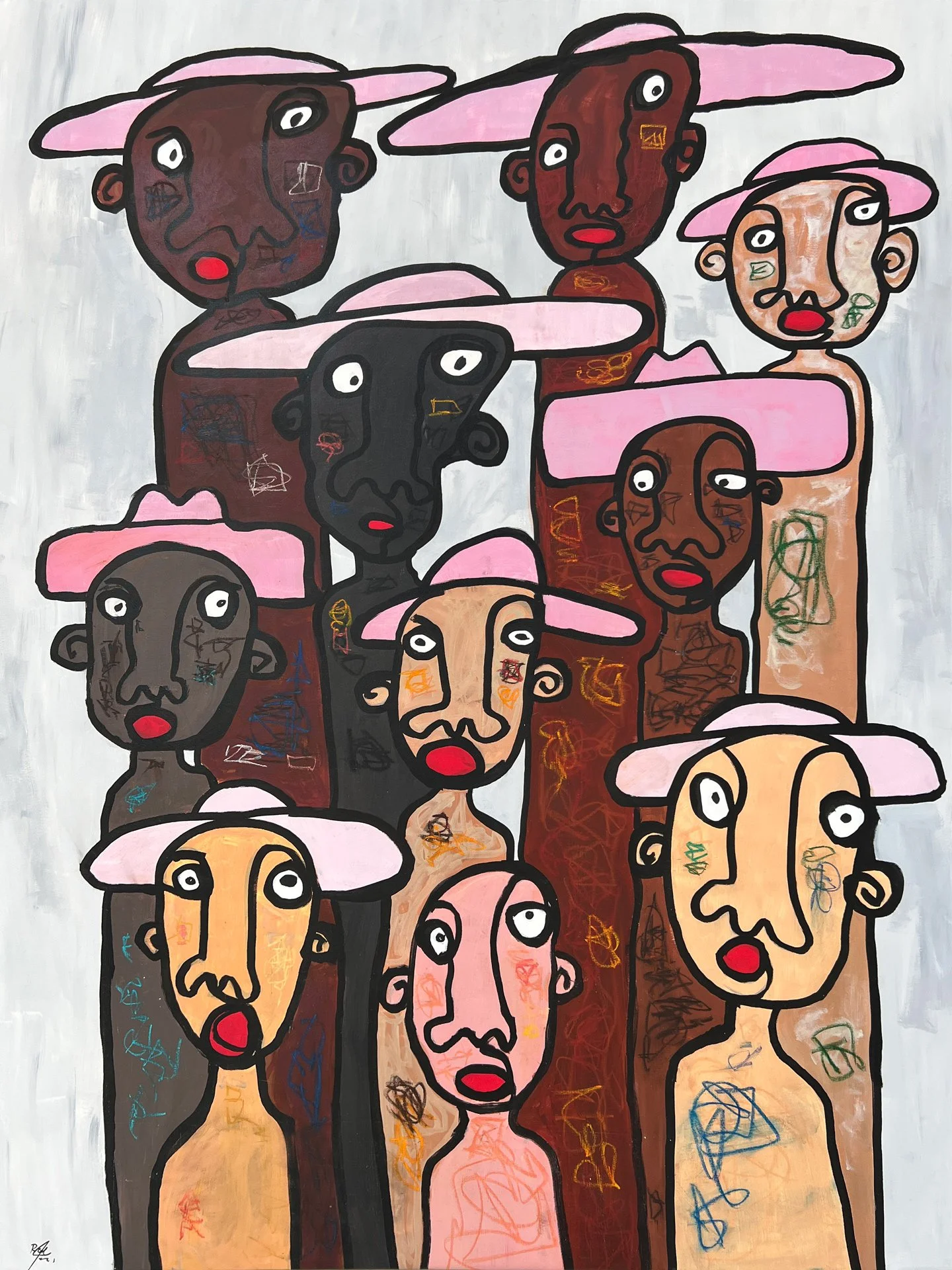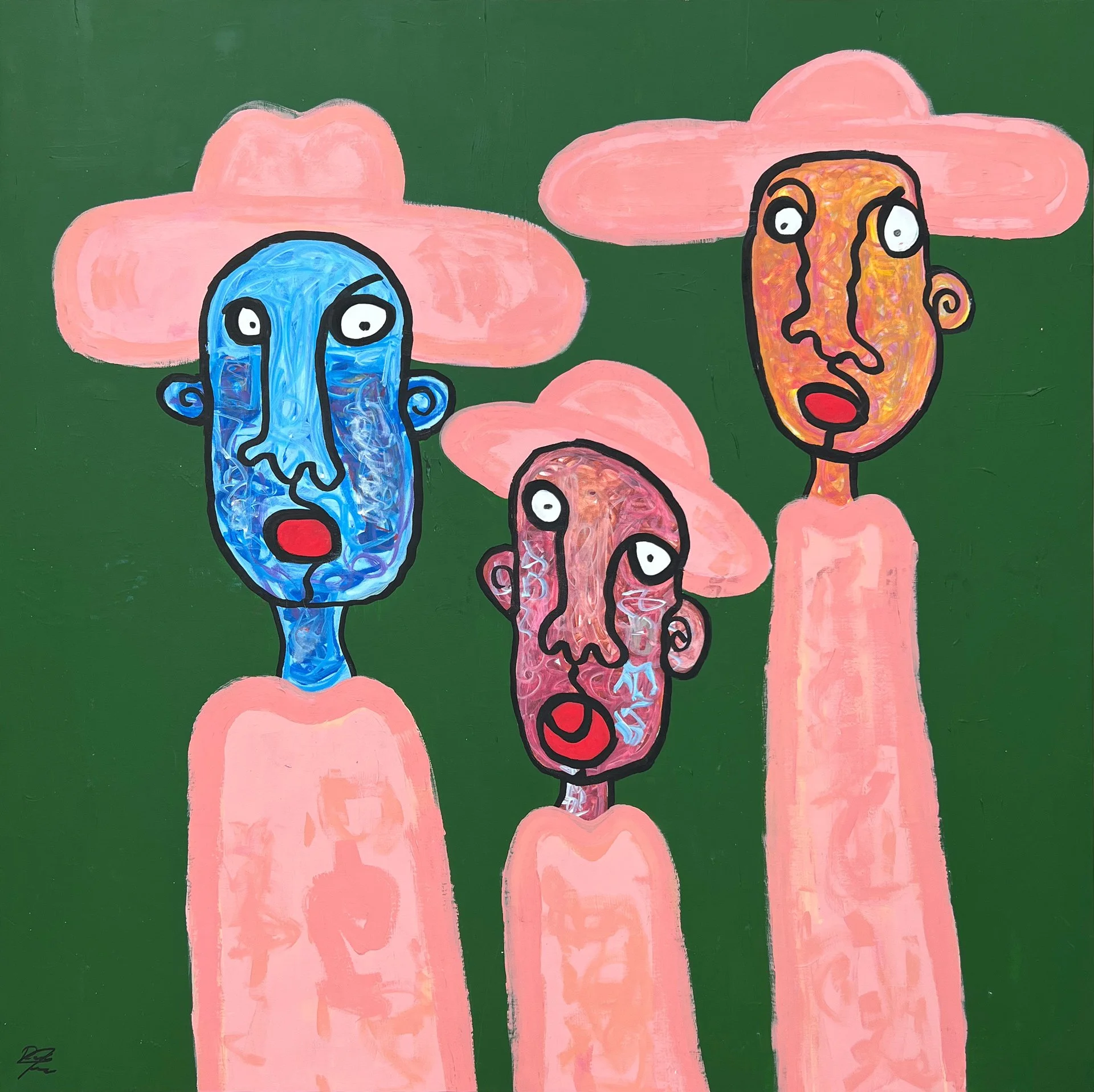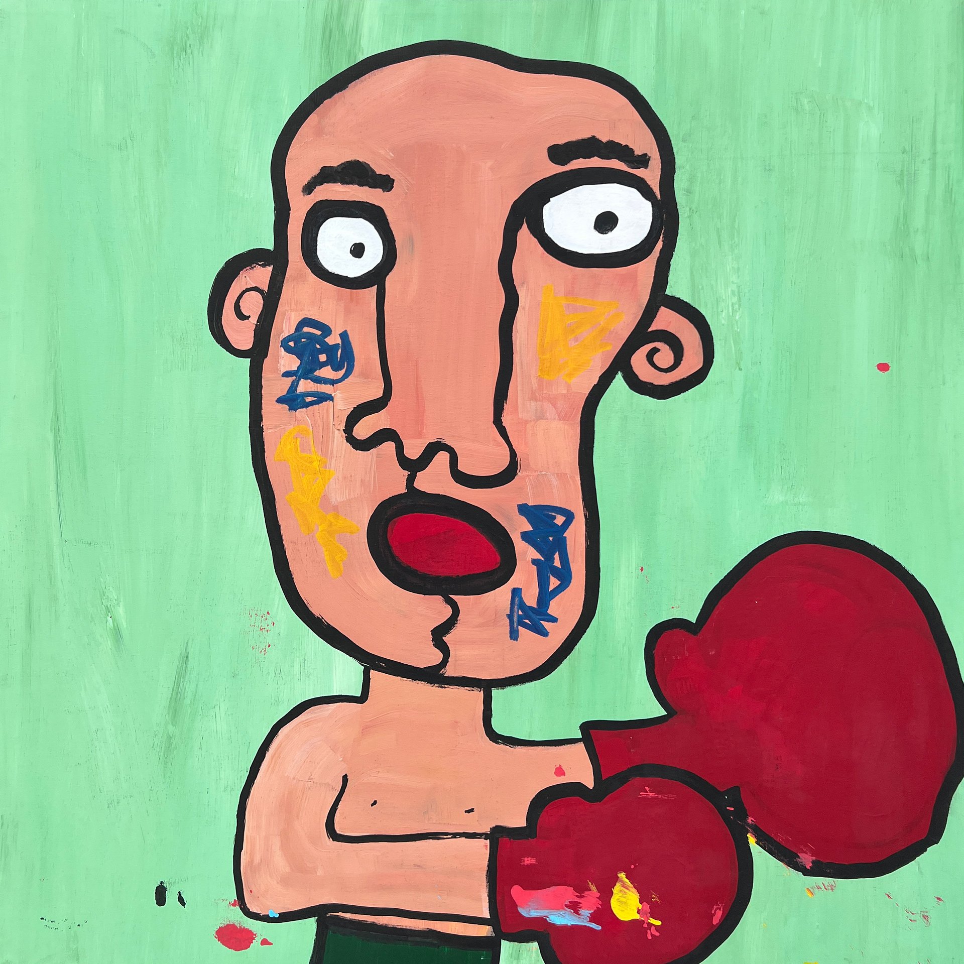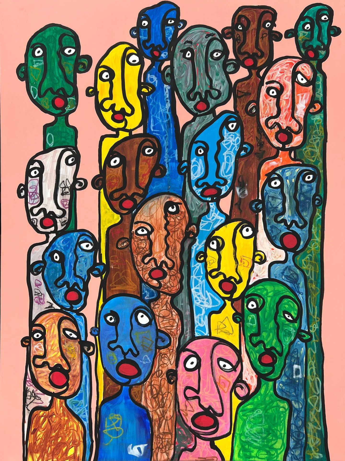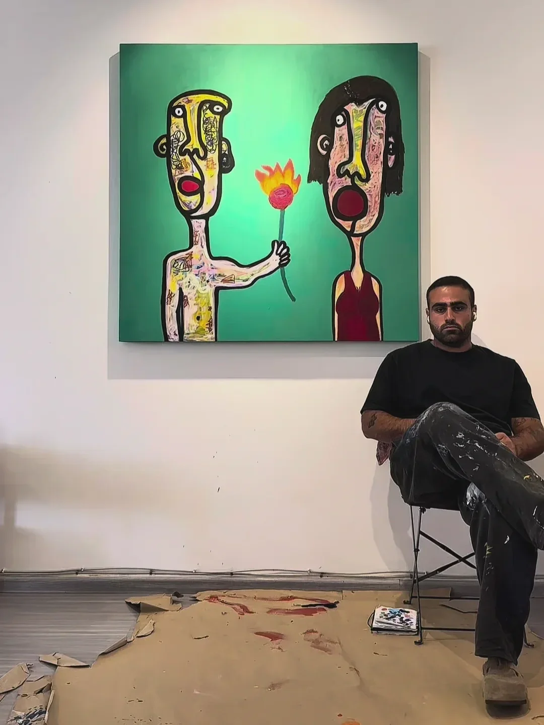 Sa pratique picturale a évolué vers une sorte de journal visuel, ancré dans les rythmes de la vie quotidienne, où l’œuvre filtre l’expérience à travers un prisme ludique et sans filtre. L’un des principaux objectifs des peintures de Yazback est de conserver une liberté créative enfantine. À travers des visages abstraits, des formes à ligne unique et une anatomie déformée, il explore les émotions, l’identité et les relations humaines.